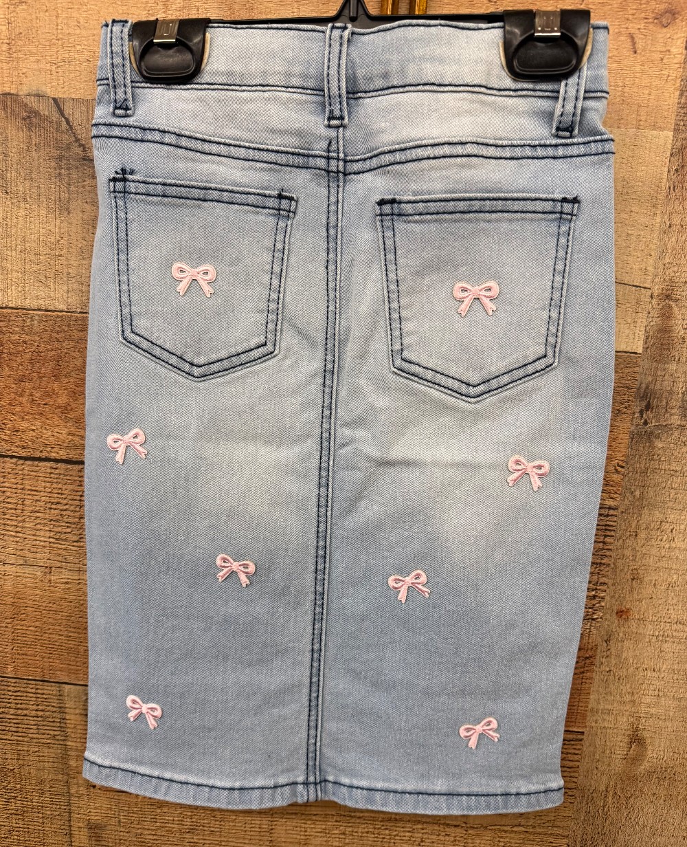 Home / *Denim Skirts - GIRLS / Be-Girl Girls lt indigo w/bows denim skirt