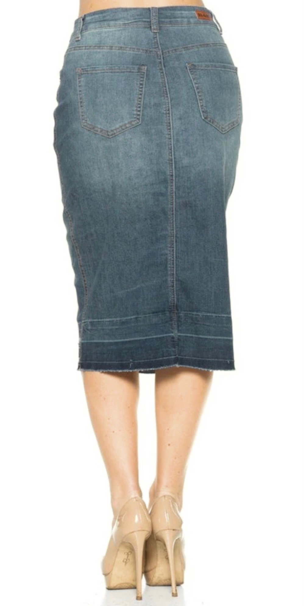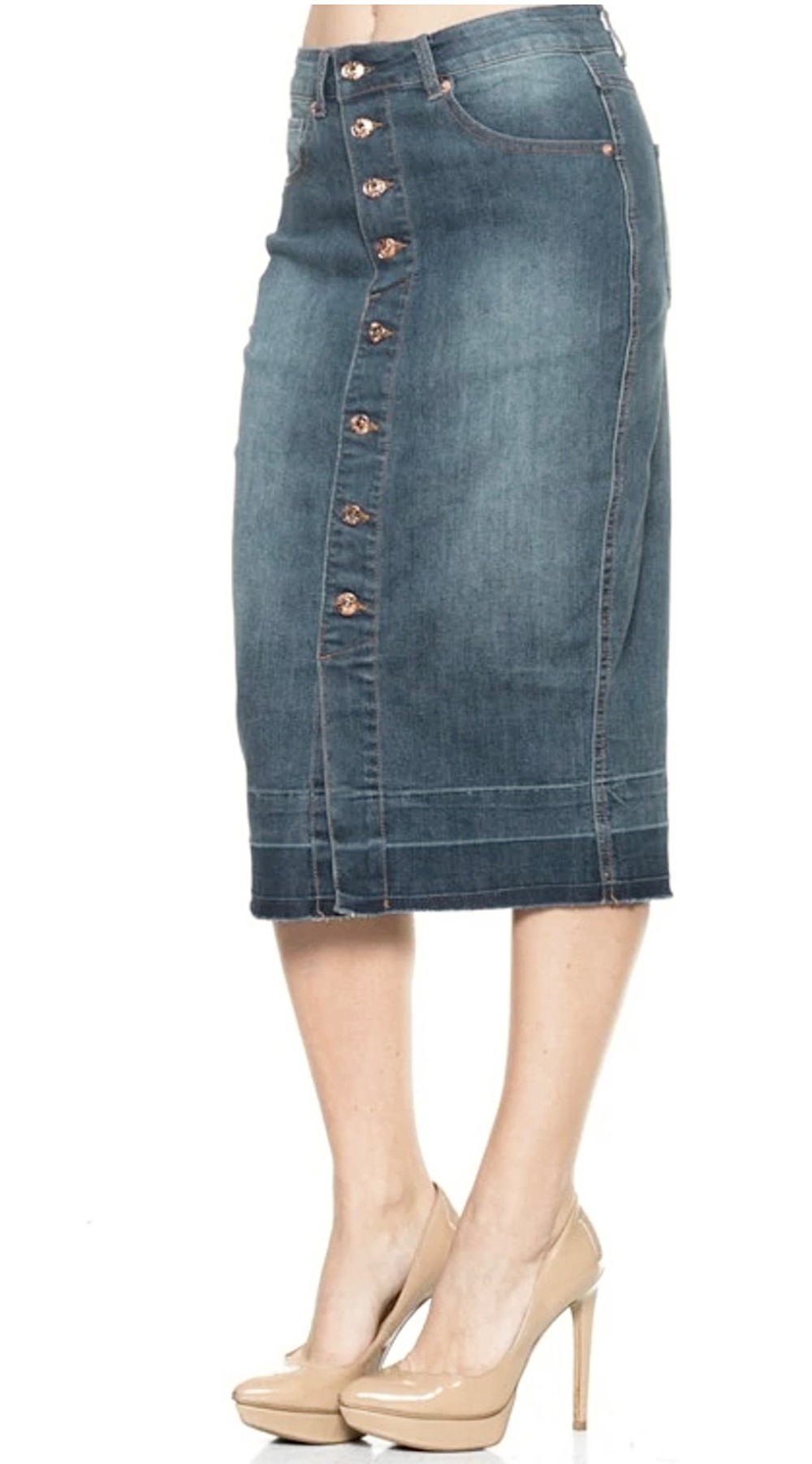 Ladies Vintage button down denim raw hem skirt
